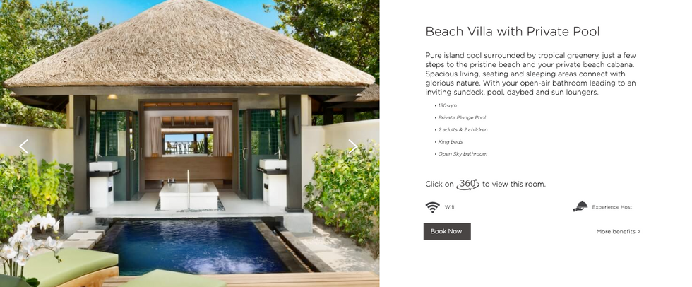 ENAMORADO DE…: Paquete opcional con todo incluido. Experiencia de buceo con mantarrayas.La residencia real con spa privado;perfecto para un gran grupo de familiares o amigos.NO PERDERSE: Echa un vistazo a un kit de snorkel al comienzo de tu estadía para explorar el gran arrecife de la casa.Campo de prácticas de golf ecológico.ESTILO Y CARÁCTER: De estilo tradicional, todas las villas cuentan con piscinas privadas al aire libre, terrazas.