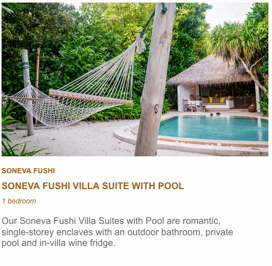 Si las experiencias son mágicas, la filosofía es simple; Sin noticias, sin zapatos. Los creadores del resort, Sonu y Eva Shivdasani concibieron una filosofía ganadora: la simple sofisticación de combinar el lujo con la naturaleza, siendo pioneros en lo que llaman un "lujo inteligente". Hoy, Soneva Fushi sigue siendo el refugio favorito para una legión de invitados famosos y de alto perfil.